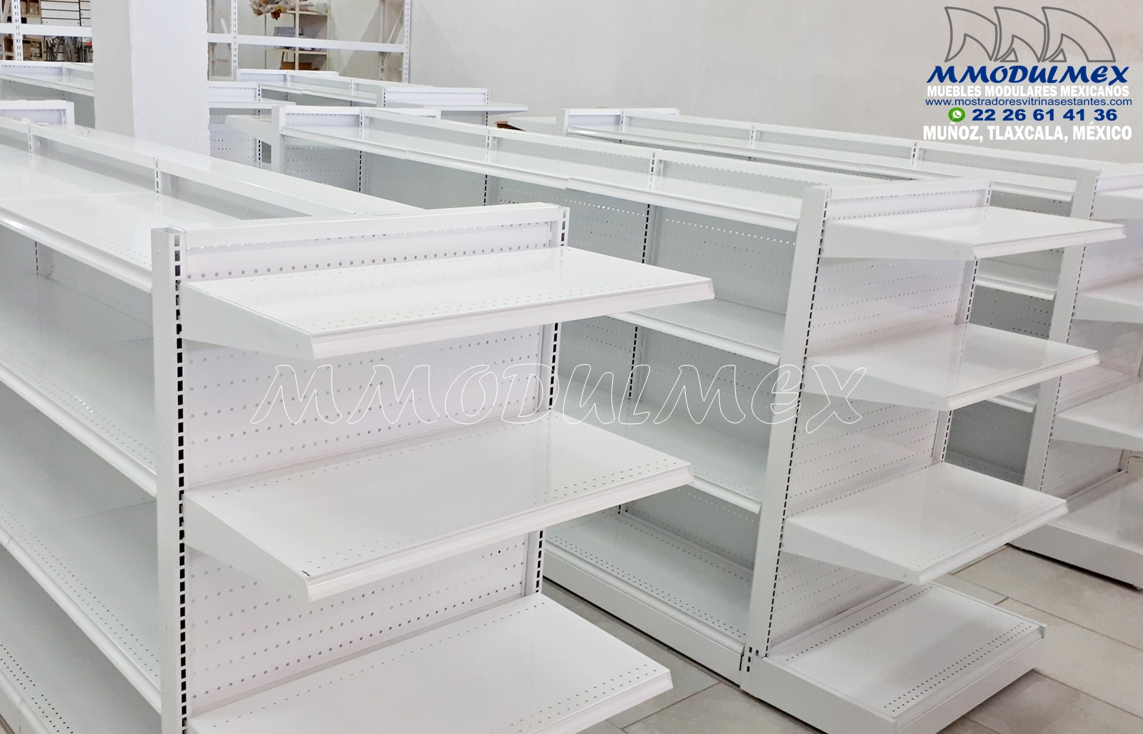 Las góndolas metálicas, centrales y de pared, son el principal elemento de almacenaje y exhibición de los productos para su negocio. Para exhibir la gran cantidad y diversidad de productos o marcas que existen en el mercado se requiere contar con góndolas adecuadas, resistentes y estéticas que no descuiden la presentación del negocio. Contamos con góndolas metálicas de muy diversos tamaños y con características especiales para poder exhibir cada uno de sus productos de tiendas o de herramientas y accesorios en caso de ferreterías, solo por mencionar dos giros de negocio. Tenemos distintos tipos de barras y accesorios para colocar y exhibir desde las herramientas más pequeñas o productos como tornillería y refacciones diminutas, hasta herramientas pesadas o maquinaria especializada que se venden en este tipo de negocios.