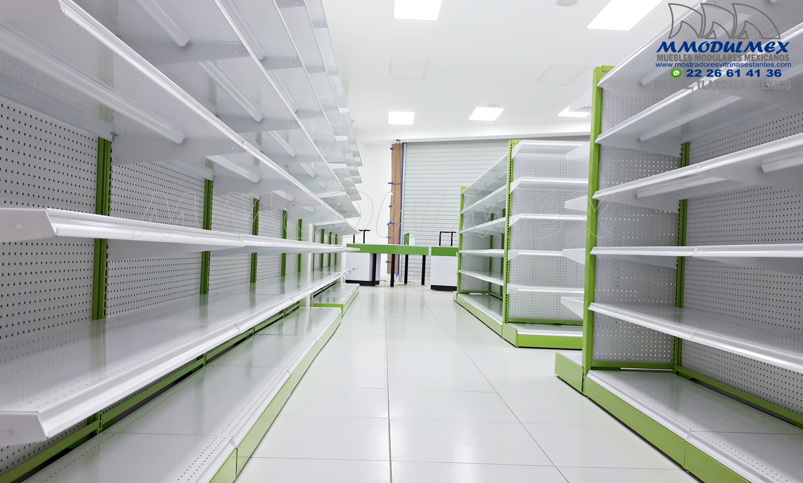 La variedad de tamaños de los módulos centrales y cabeceras, permite hacer cualquier configuración para adaptarlo a cualquier tamaño de espacio o local, sea grande como un supermercado o pequeño como una tienda de conveniencia o minisúper.